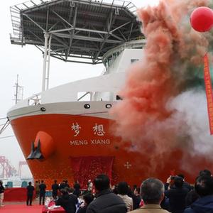 大洋鑽探被譽為海洋科技“皇冠”。“夢想”號由自然資源部中國地質調查局與150余家單位密切協同建造,總噸約33000噸,續航力15000&&,自持力120天,具備全球海域無限航區作業和海域11000米鑽探能力。