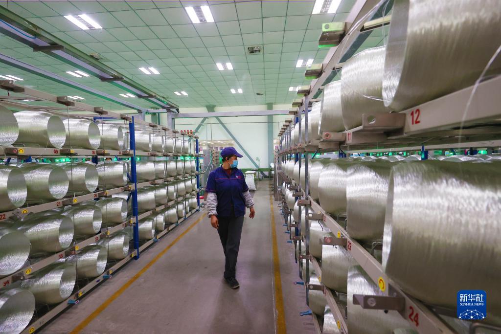12月18日,在重慶市黔江區三磊玻纖有限公司絡紗車間,工作人員在巡視自動化生産線。