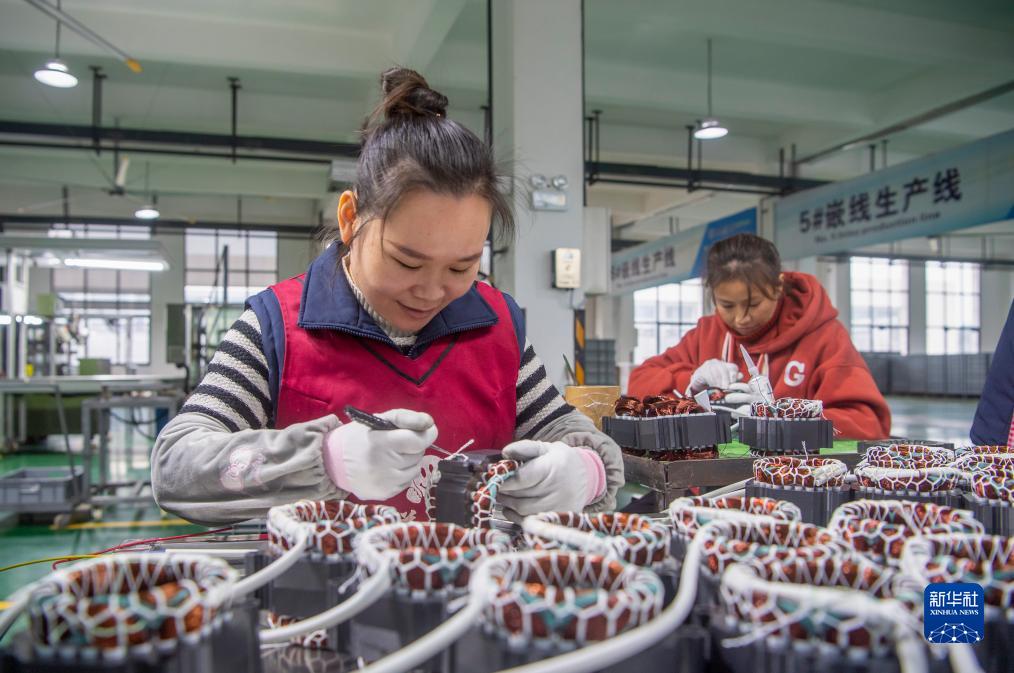 12月18日,在四川省廣安市廣安區臨港經開區南洋電機公司,工人在生産電機産品。