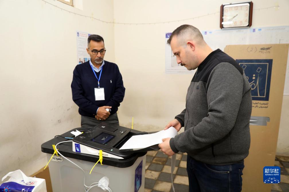 12月18日,一名選民在伊拉克巴格達的一處投票站投票。