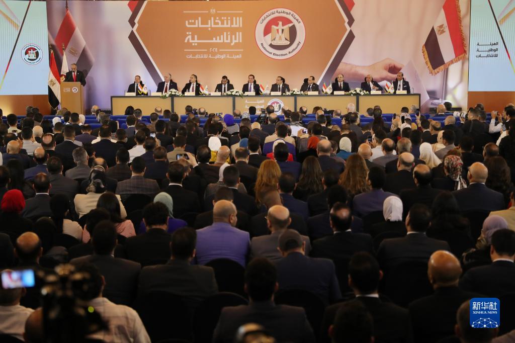 這是12月18日在埃及首都開羅拍攝的埃及全國選舉委員會新聞發布會現場。