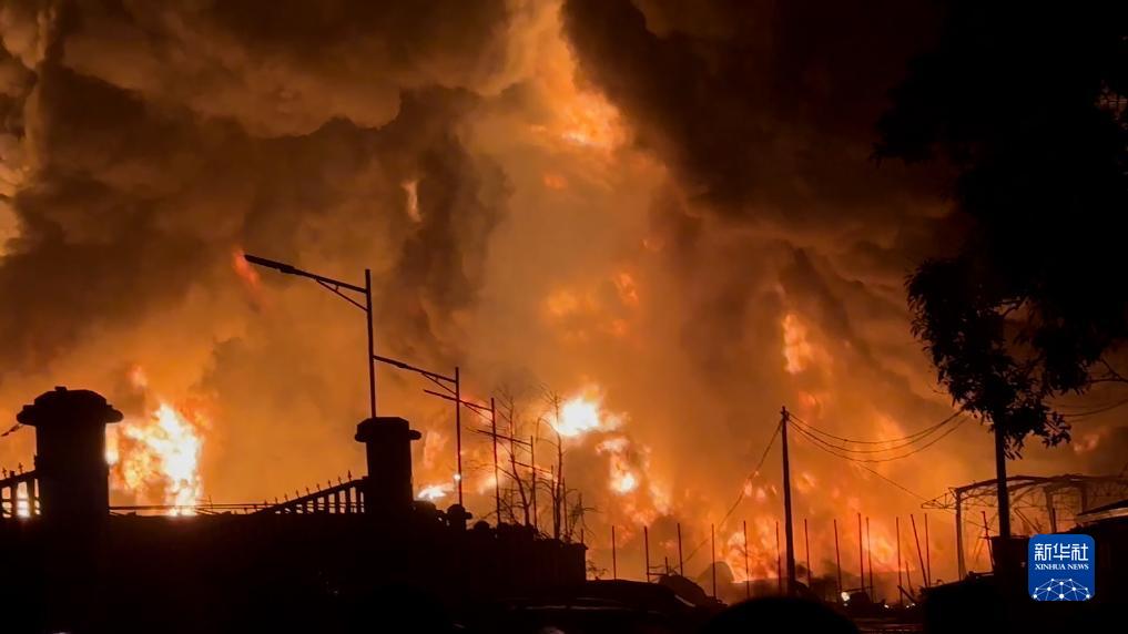這是12月18日在幾內亞首都科納克裏拍攝的燃油倉庫火災現場。
