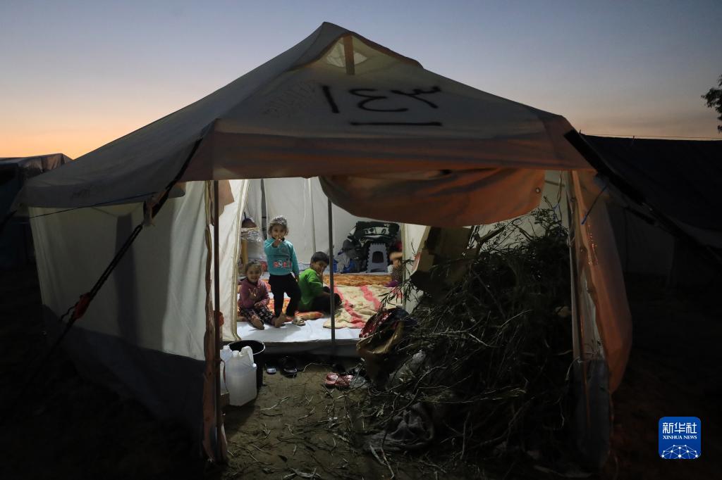 12月18日,在加沙地帶南部城市拉法,孩子們在臨時避難所休息。