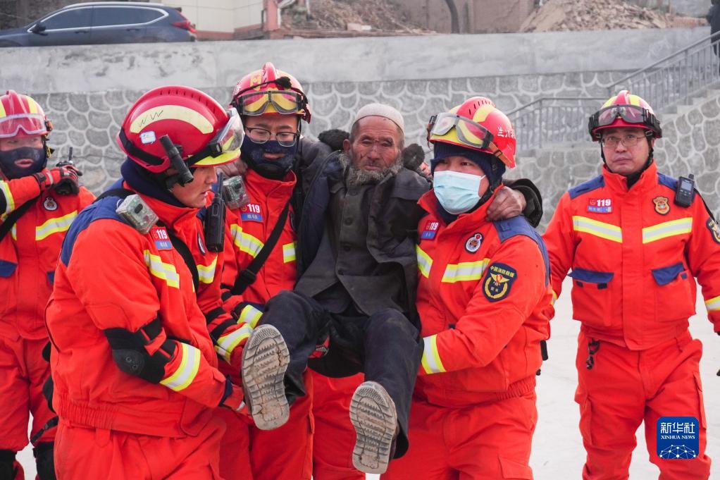 12月19日,在甘肅省臨夏回族自治州積石山保安族東鄉族撒拉族自治縣大河家鎮大河村,消防人員開展救援。