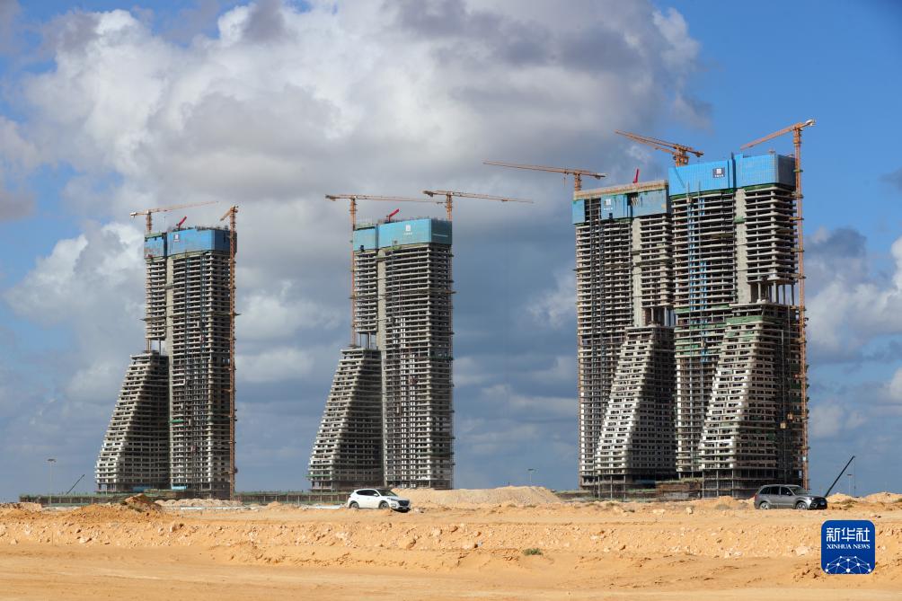 這是12月18日拍攝的埃及阿拉曼新城超高綜合體項目建設工地。