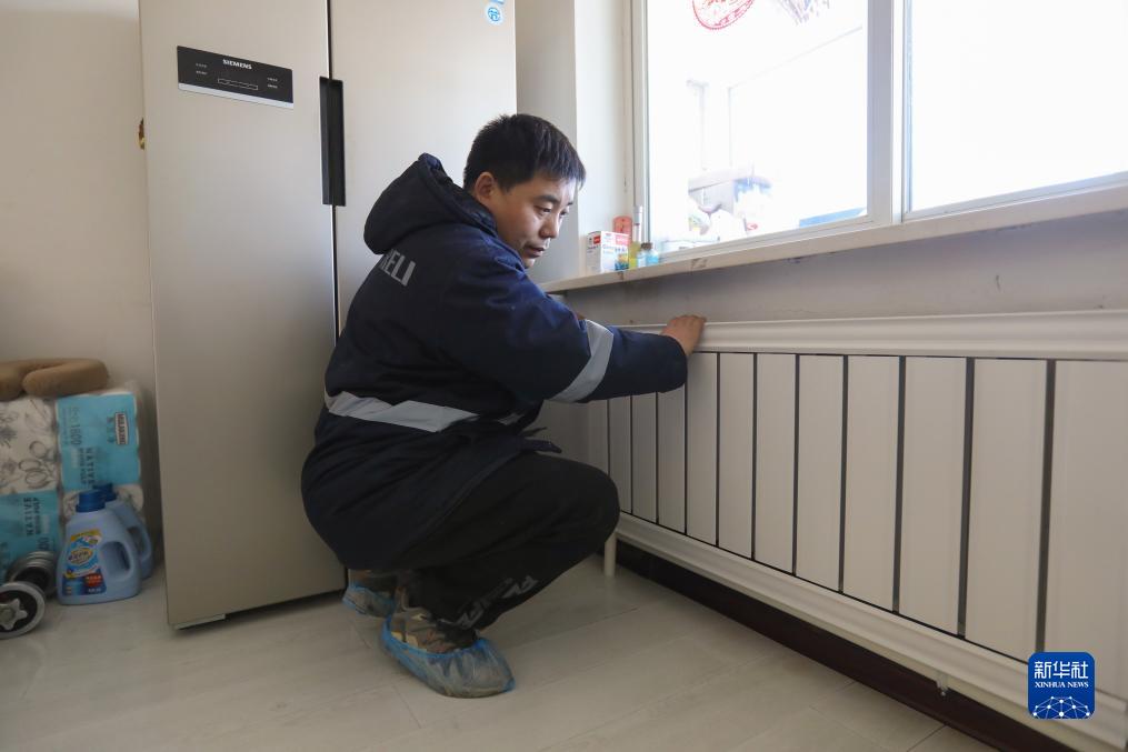 12月18日,瀋陽天潤熱力的工作人員在瀋陽市蘇家屯區一居民家中了解室內供暖情況。