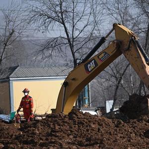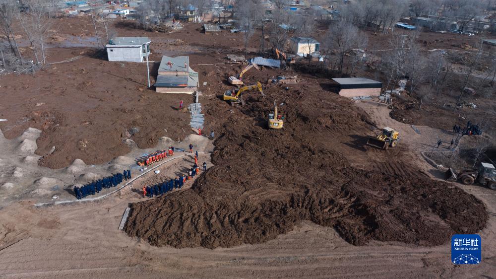 12月19日,救援機械和人員在青海省海東市民和回族土族自治縣中川鄉金田村清理地震引發的砂涌。