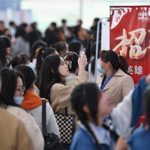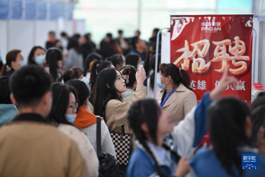 求職者在“職引未來”2023年全國大中城市巡迴招聘(銀川站)活動現場查看崗位信息(2023年4月21日攝)。