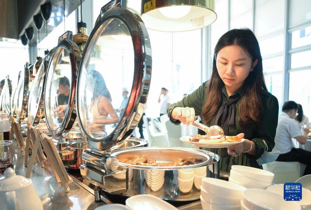人們在“儋耳追光”驛站內的餐廳用餐(12月15日攝)。