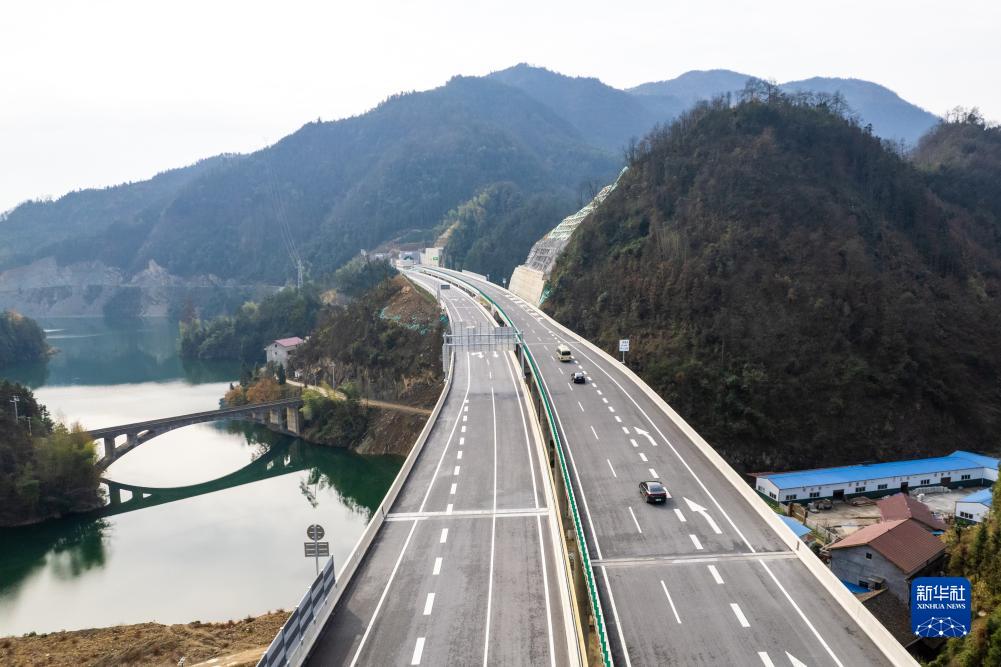 12月19日,車輛行駛在官新高速上(無人機照片)。