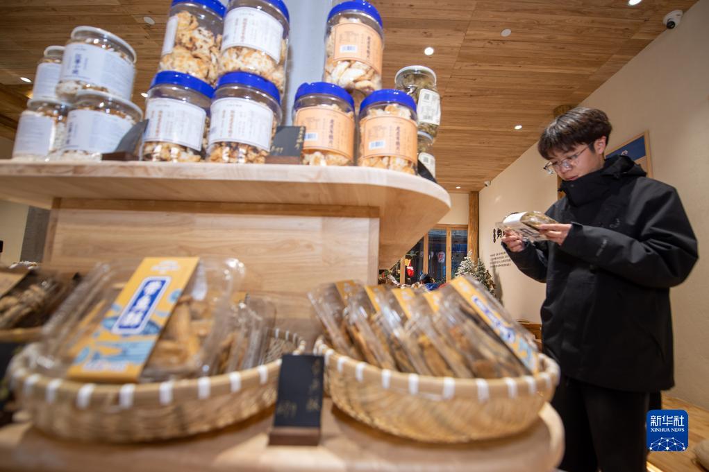 12月19日,寧波市民在“三關六碼頭”共富工坊線下商店內選購農産品。
