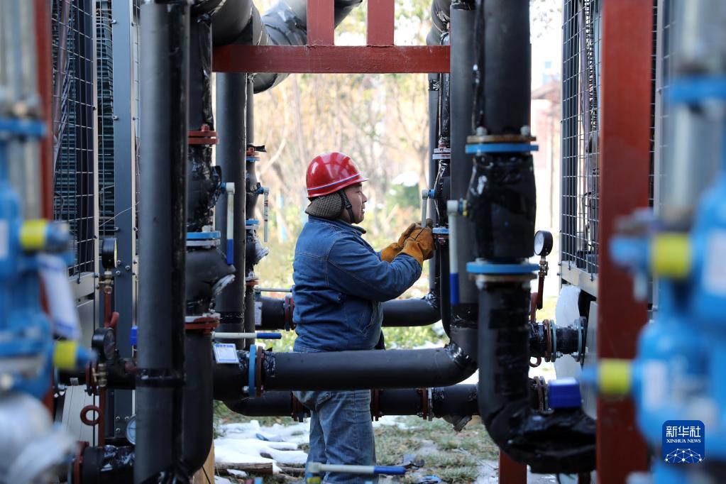 12月19日,熱力公司的員工在河南省焦作市溫縣一居民小區調試熱力設備。