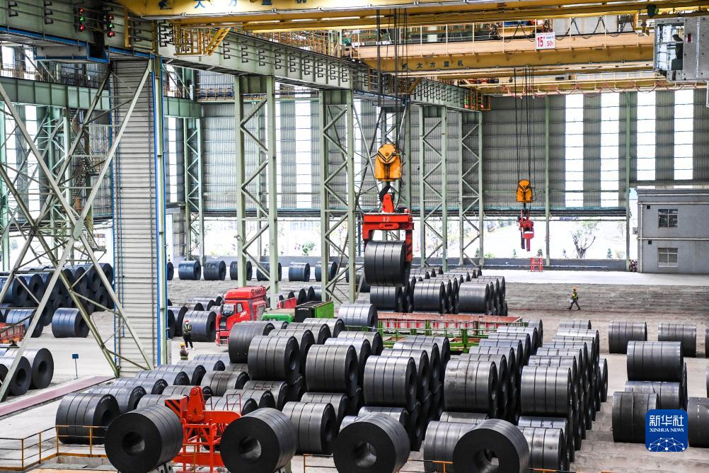 這是12月19日在廣西防城港市一家鋼鐵生産企業內拍攝的成品鋼卷。