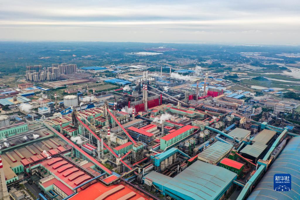 這是12月19日在廣西防城港市拍攝的一家鋼鐵生産企業(無人機照片)。