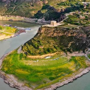 地處山西和內蒙古交界處的黃河老牛灣,黃河於峽谷兩岸壁立千仞中穿流而過,蜿蜒於陡峭山崖上的明長城在這裡與黃河交匯,形成了長城與黃河“握手”的獨特景觀。