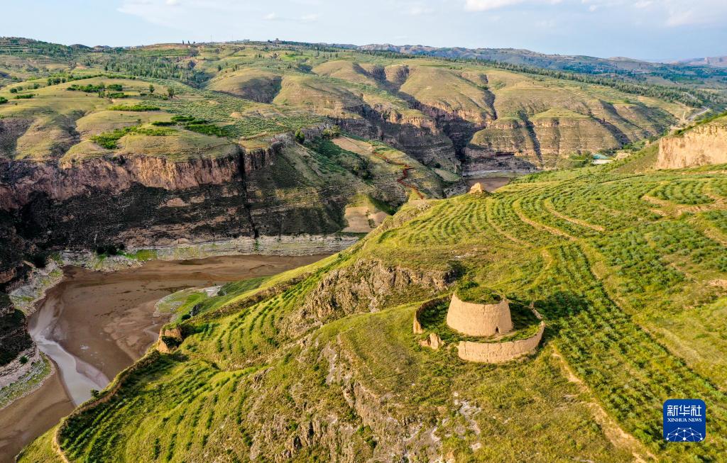 這是在山西省與內蒙古自治區交界處的黃河老牛灣拍攝的明長城遺址(無人機照片,2023年8月23日攝)。