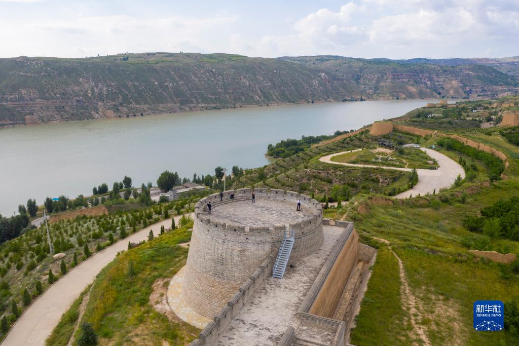 這是從老牛灣沿黃河南下至山西偏關護寧寺附近的寺溝長城,這段長城邊墻沿黃河設立,也被稱為“黃河邊”(2023年8月27日攝,無人機照片)。