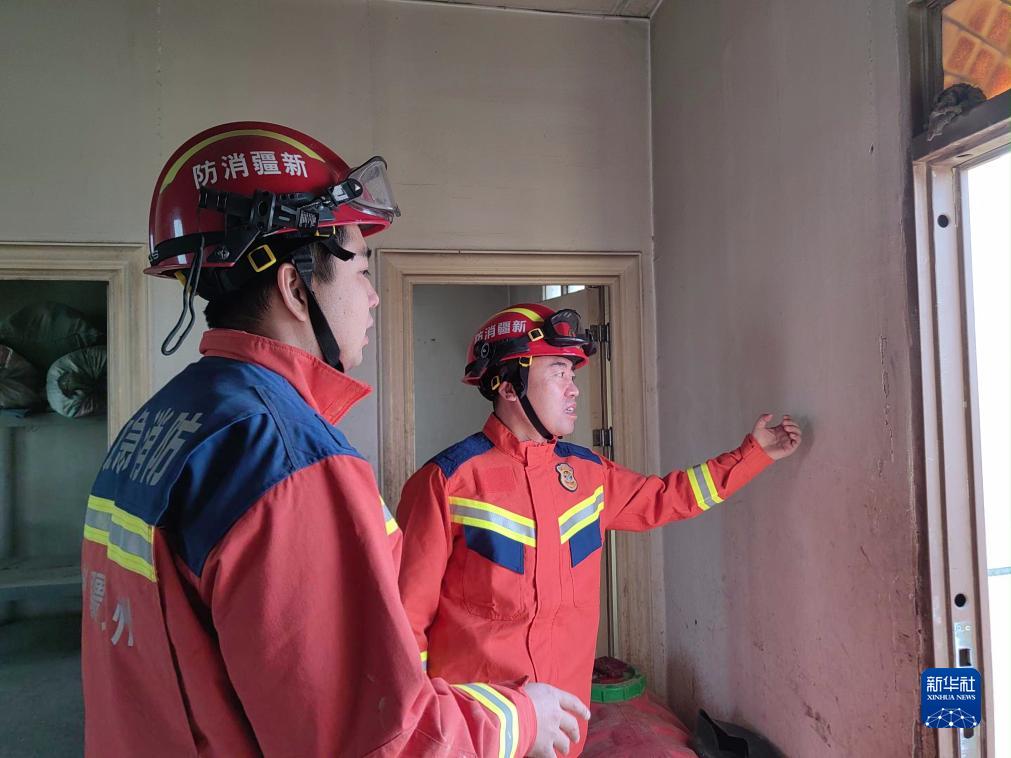 12月19日,在克州阿圖什市哈拉峻鄉皮羌村,克州消防救援人員對護邊員值班室進行勘察。