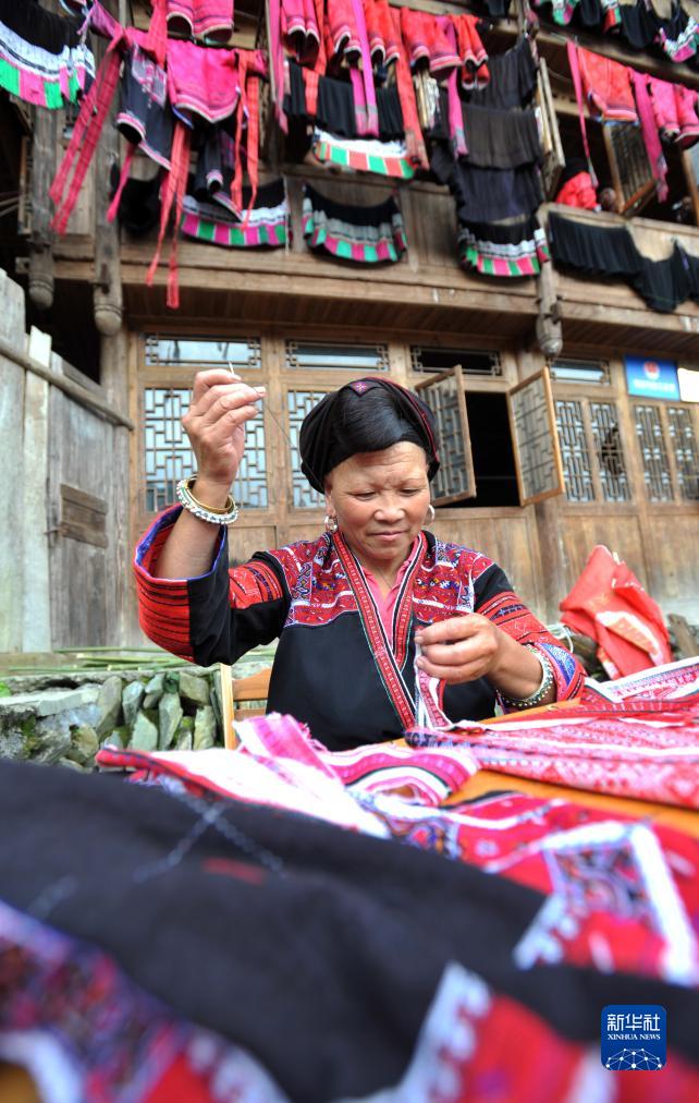 在廣西龍勝各族自治縣各個紅瑤村落,女子身上穿着具有民族特色的服飾,絢麗多姿,是一道道行走在層層梯田間的迷人“風景”。
