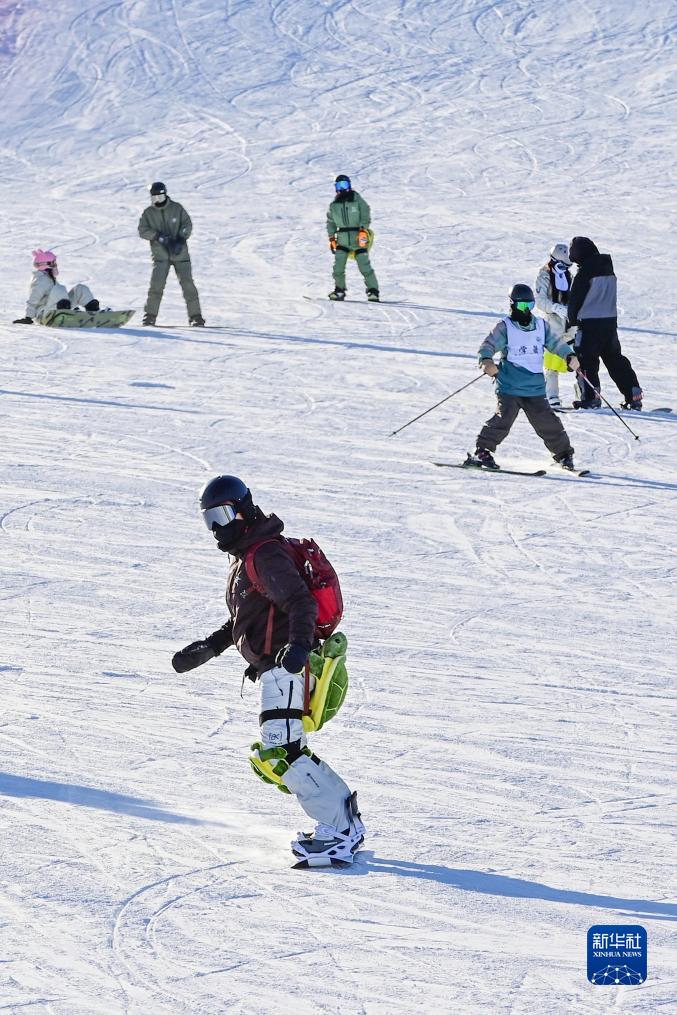 雪友在新疆阿勒泰將軍山國際滑雪度假區滑雪(12月19日攝)。