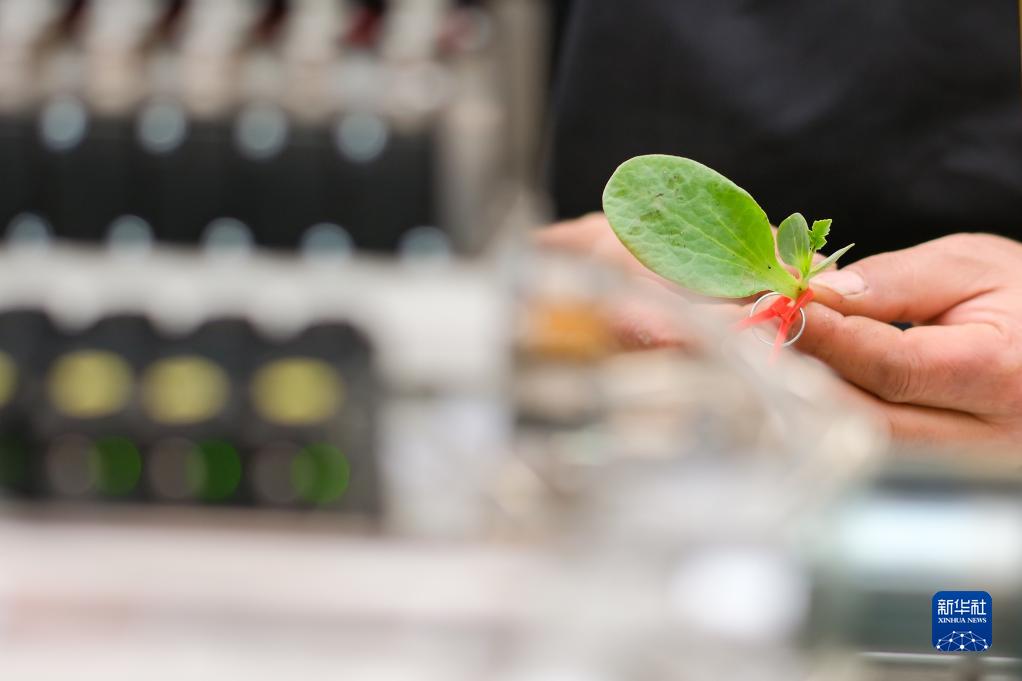 12月19日,工作人員在未來農業科技館的葉菜工廠示範區展示瓜菜砧木斷根嫁接技術。