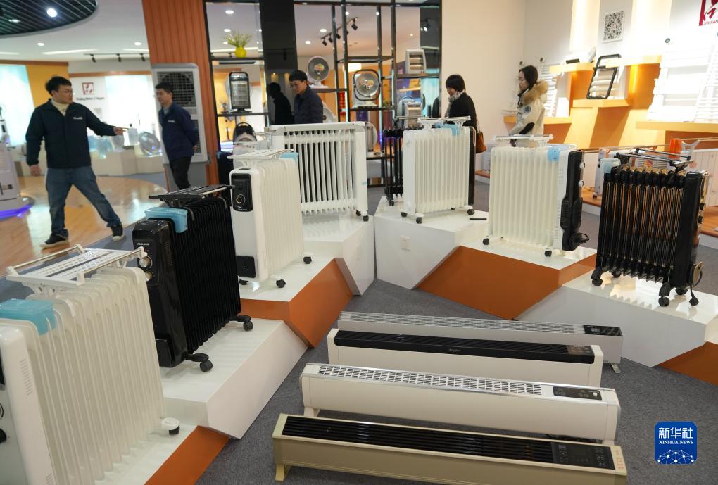 慈溪市觀海衛鎮一家取暖設備生産企業展廳內的取暖設備(12月20日攝)。