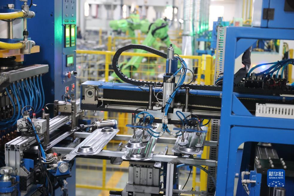 12月20日,在慈溪市觀海衛鎮一家取暖設備生産企業車間內,機械手生産取暖設備配件。