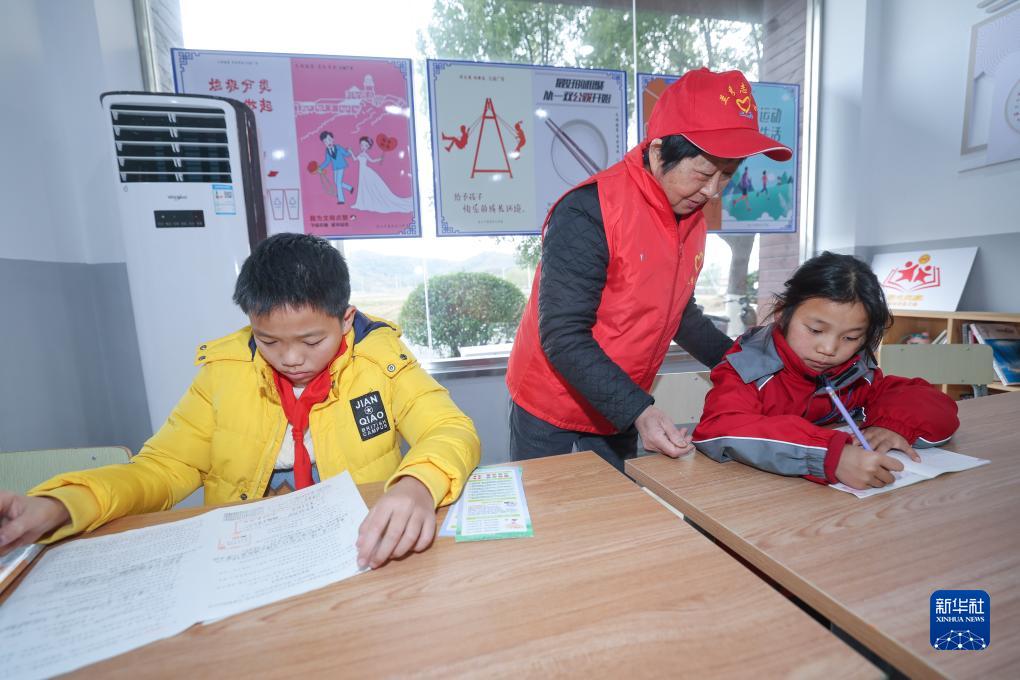 12月20日,秀山小學學生在“民生小鋪”志願者的陪護下做作業。