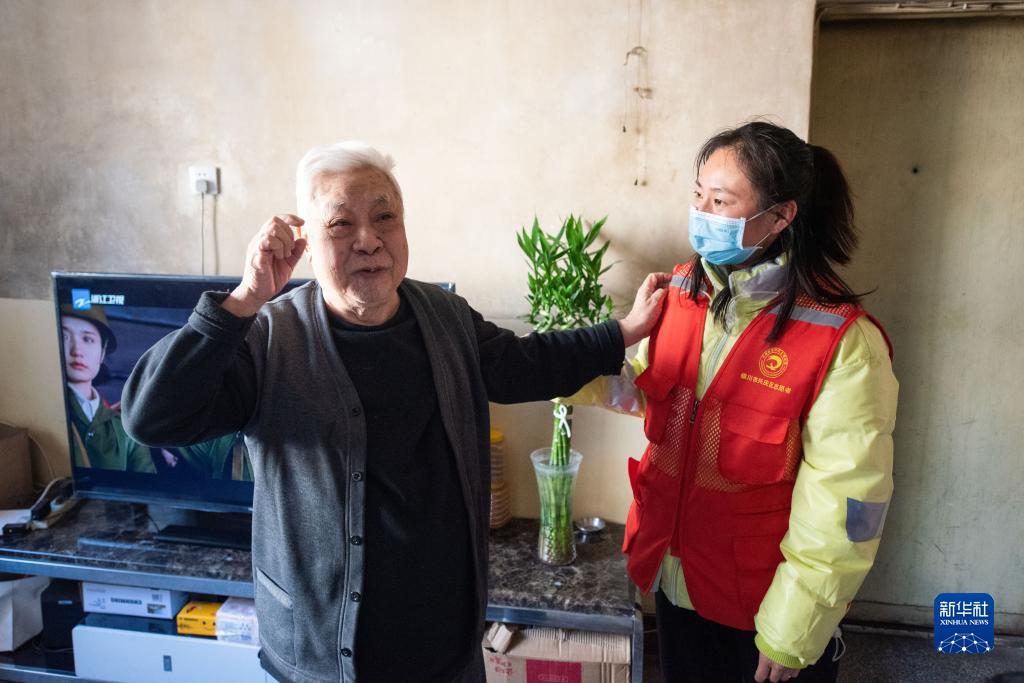 12月20日,銀川市興慶區解放西街街道文藝社區工作人員看望社區高齡、行動不便老人並送餃子。