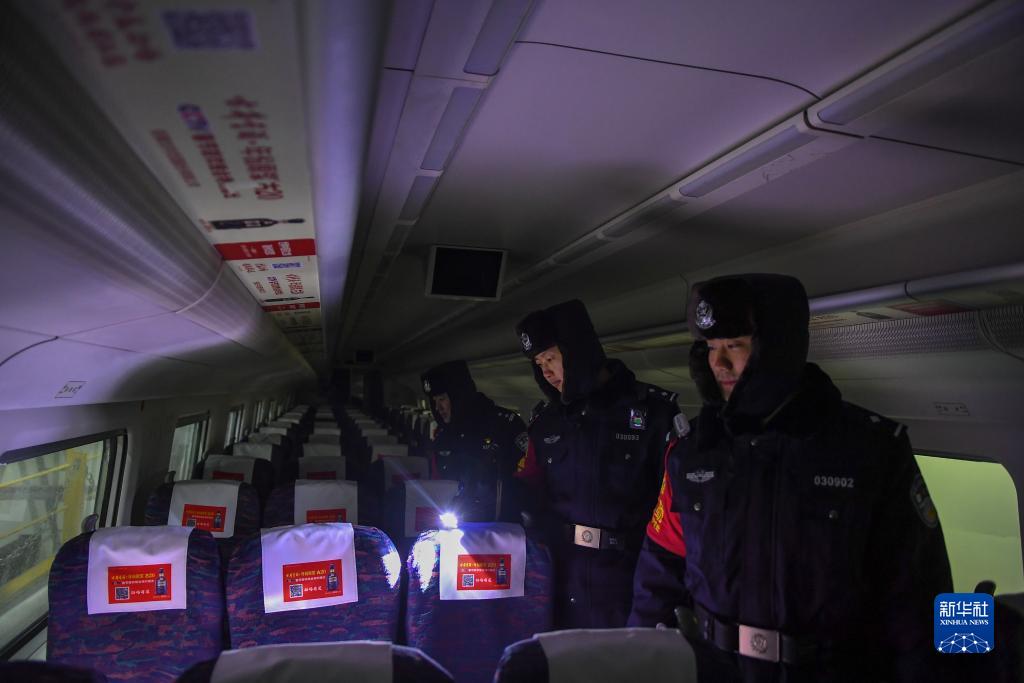 臨近午夜,在中國鐵路瀋陽局集團有限公司瀋陽動車段長春動車運用所(下稱“長春動車所”),運行了一天的動車組列車陸續返回車間等待檢修。瀋陽鐵路公安局長春公安處民警王佔東、趙軍哥和張天龍穿好防寒衣物,帶好裝備,冒着嚴寒走上執勤點位。