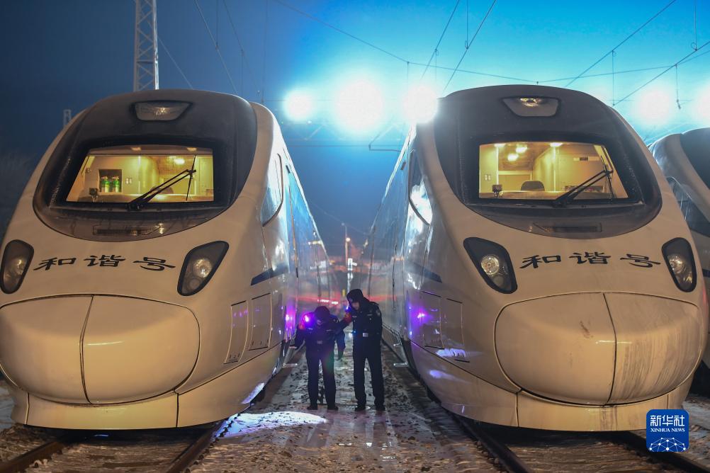 12月19日,在長春動車所,民警張天龍(左)和趙軍哥在進行巡查工作。