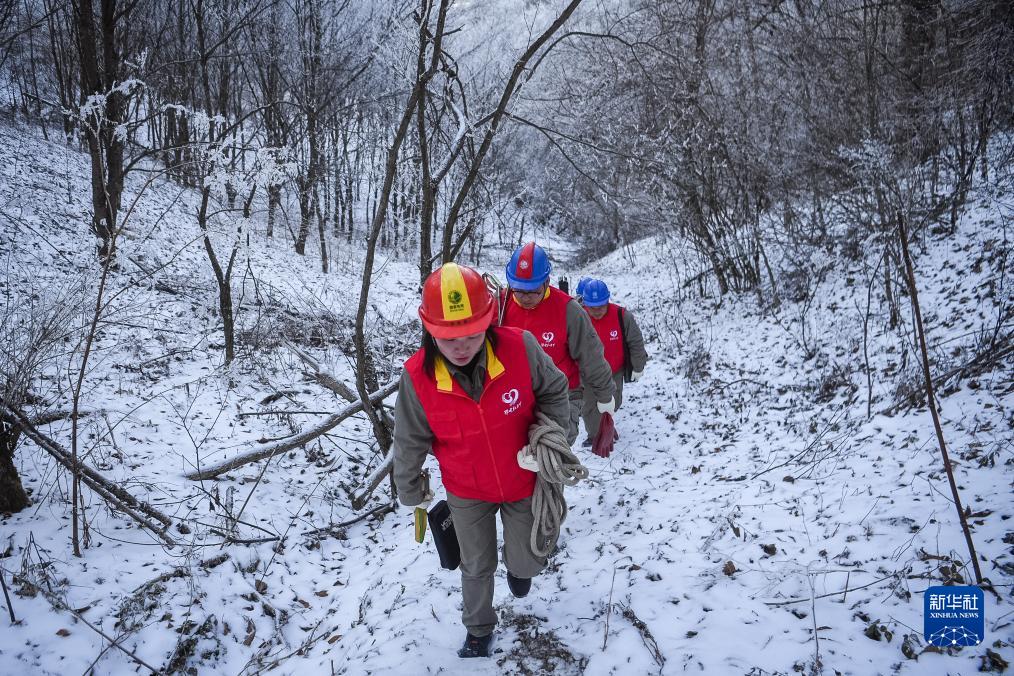 12月19日,國網神農架供電公司運維人員在極端天氣線路特巡特護途中。