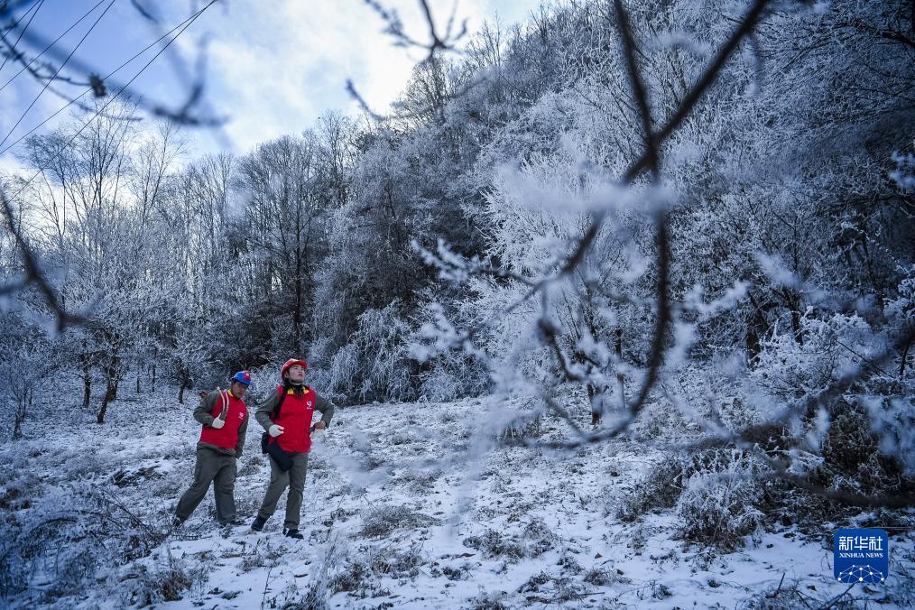 近日,湖北省神農架林區迎來低溫雨雪天氣,為保障輸電線路運行安全,國網神農架供電公司運維人員迎着風雪巡線、排查、檢修。
