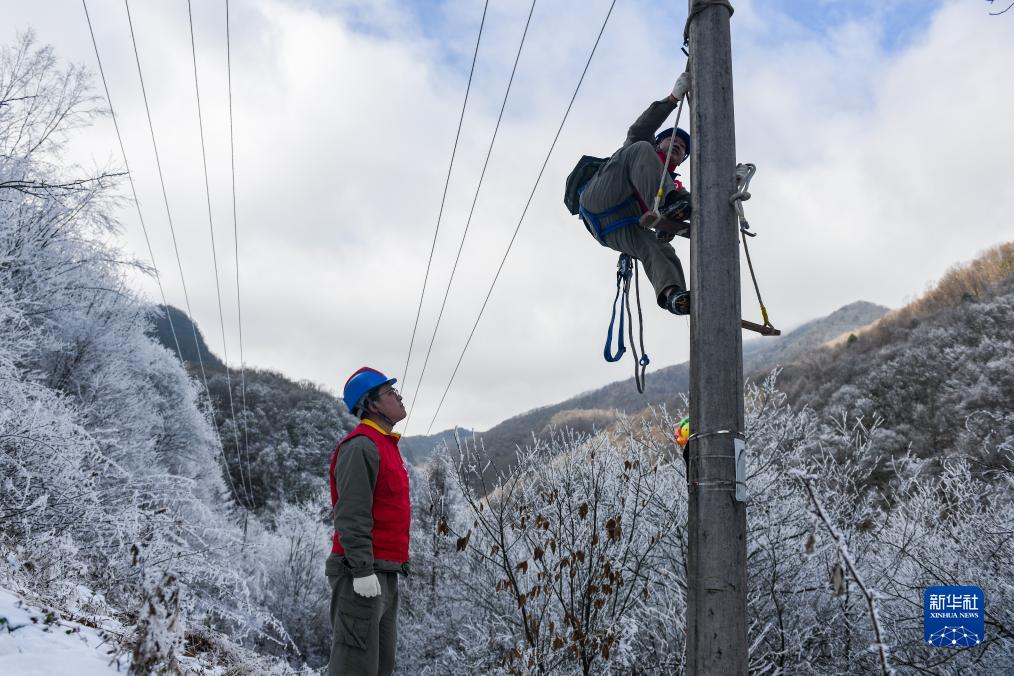 12月19日,國網神農架供電公司運維人員在登桿檢查。