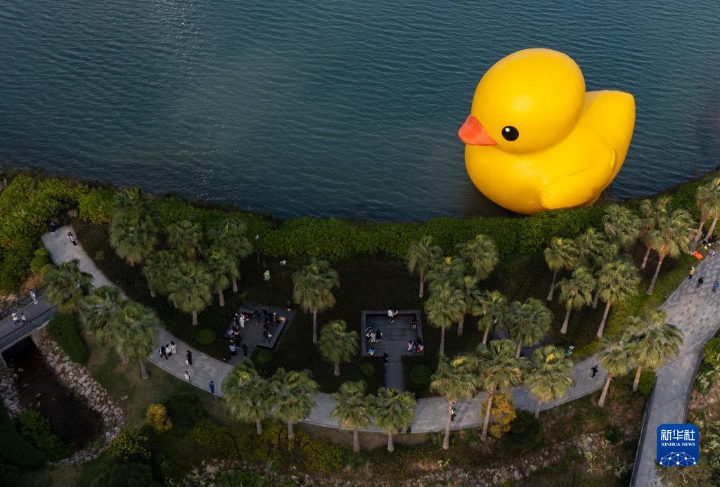 當日,2023深圳灣公共藝術季在深圳人才公園開幕,包括“大黃鴨”在內的12件出自國內外藝術家之手的雕塑和裝置作品在該公園向公眾展出。