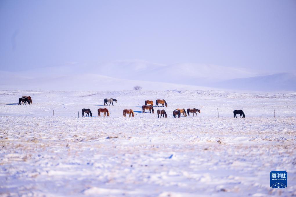 寒冬時節,內蒙古錫林郭勒盟西烏珠穆沁旗的草原白雪皚皚、銀裝素裹,呈現出獨特的冬日美景。