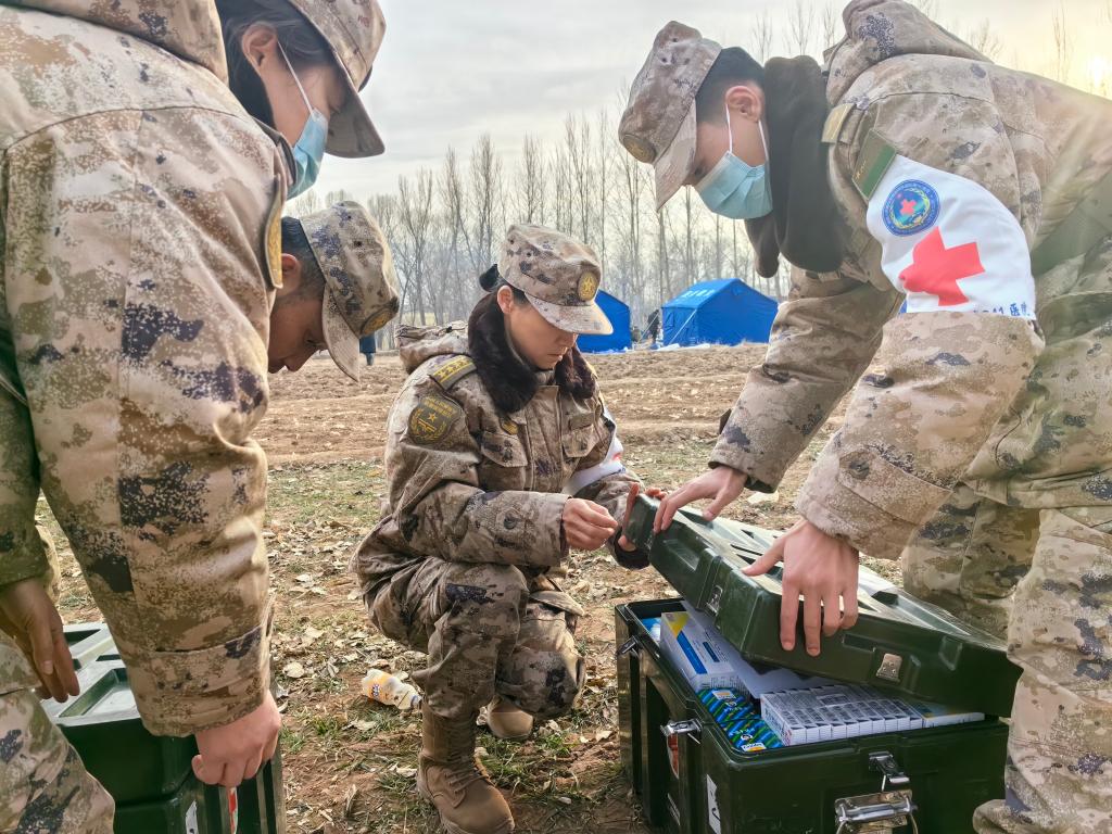 12月20日,西寧聯勤保障中心所屬第941醫院專家醫療隊赴青海省海東市民和縣災區後立即組織送醫送藥巡診工作。