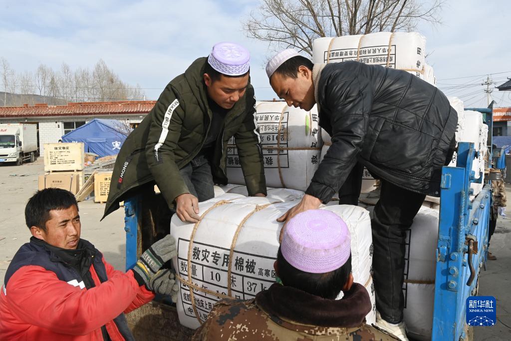 甘肅省臨夏州積石山縣6.2級地震發生後,各方力量馳援一線,中央救災物資以及社會捐贈物資持續不斷運抵,幫助受災群眾渡過難關。