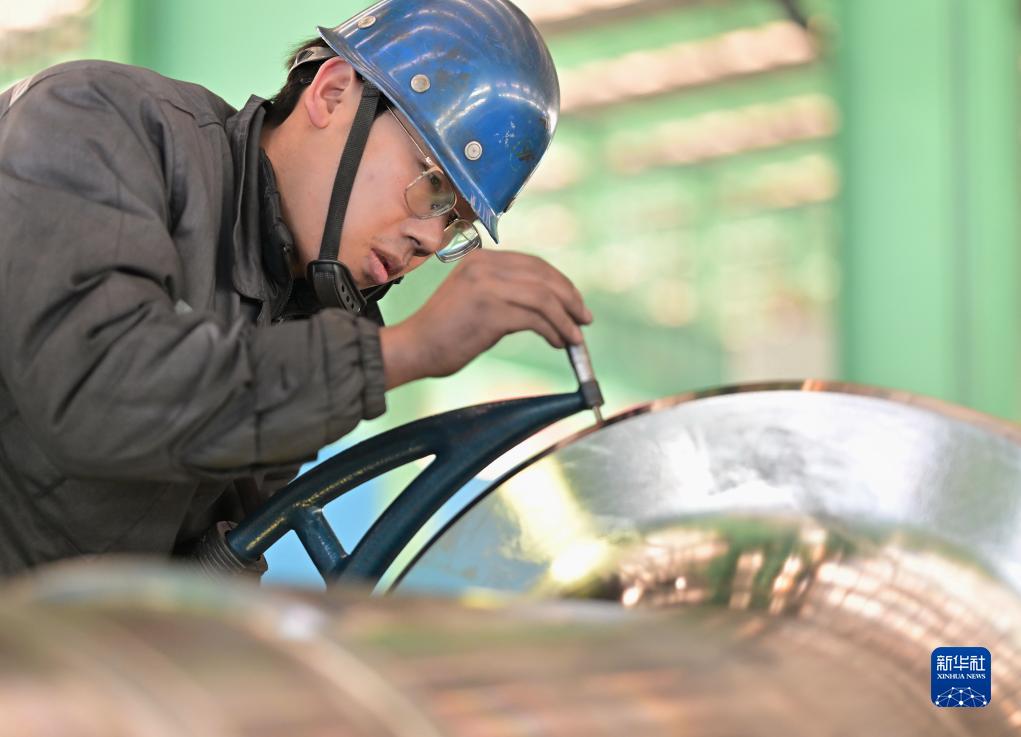 12月20日,工人在河北省唐山市豐潤區一家軋輥企業的生産車間工作。