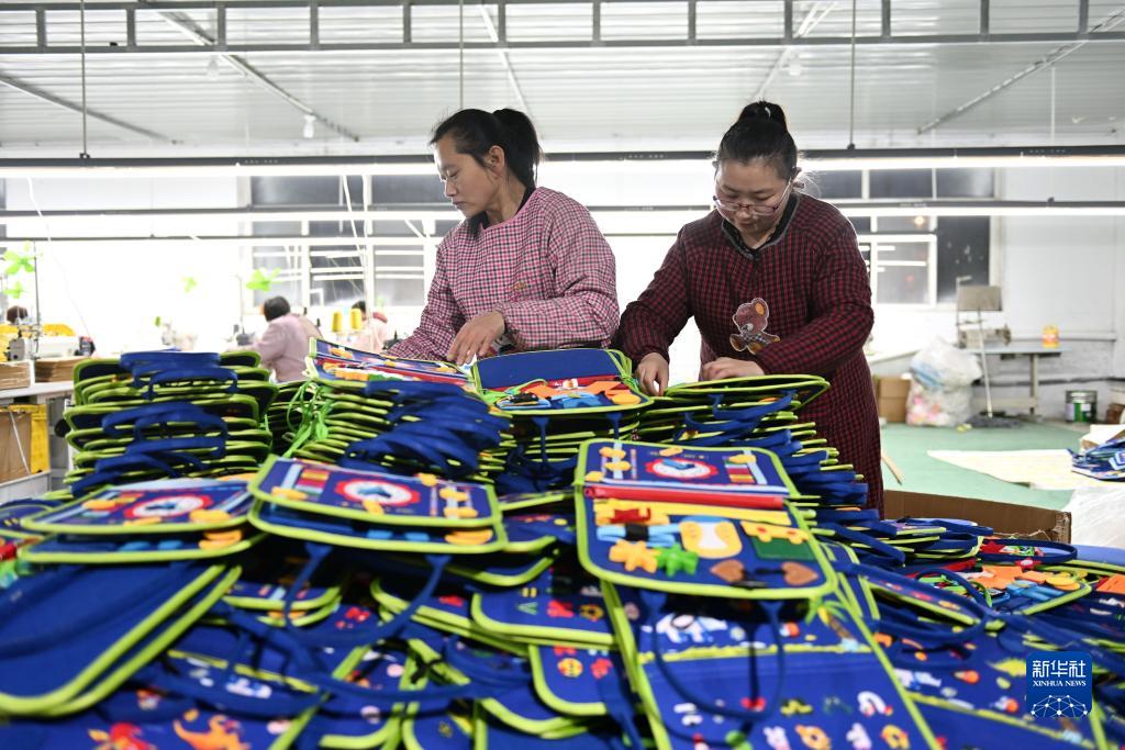 12月20日,河北省南宮市一家毛氈製品生産企業的員工在整理毛氈手提包。