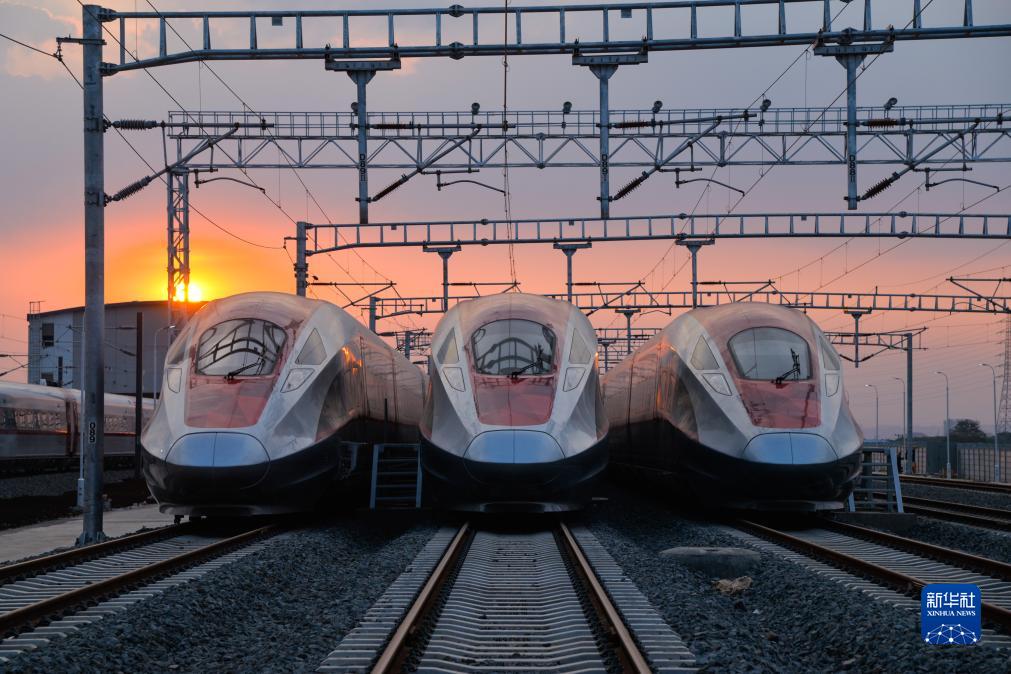 8月17日,在印度尼西亞萬隆,雅萬高鐵高速動車組停靠在雅萬高鐵德卡魯爾動車所附近。