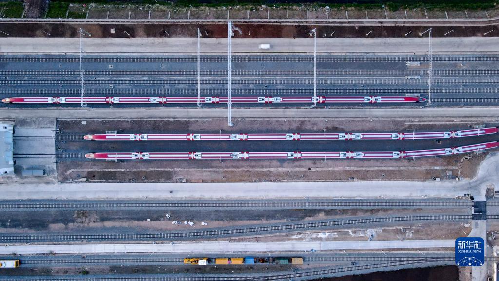 7月20日,雅萬高鐵列車停靠在印度尼西亞萬隆德卡魯爾動車所附近(無人機照片)。
