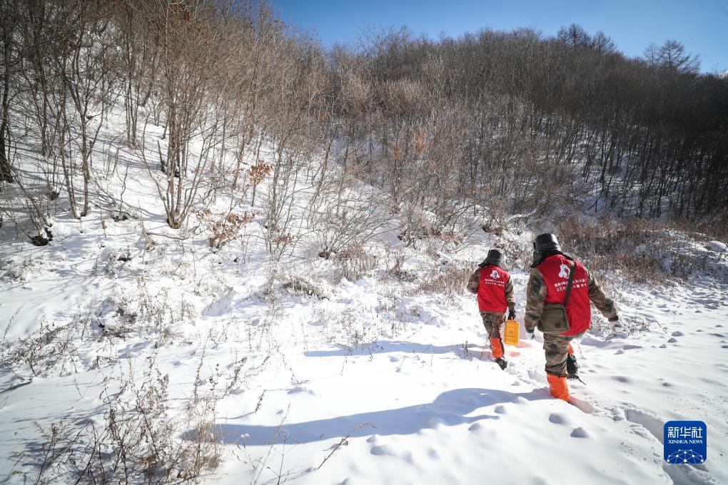12月20日,國網本溪供電公司輸電線路巡檢工人在前往500千伏撫程線175號鐵塔的路上。這座鐵塔坐落在本溪市南芬區下馬塘街道太平山村附近的一座山上。