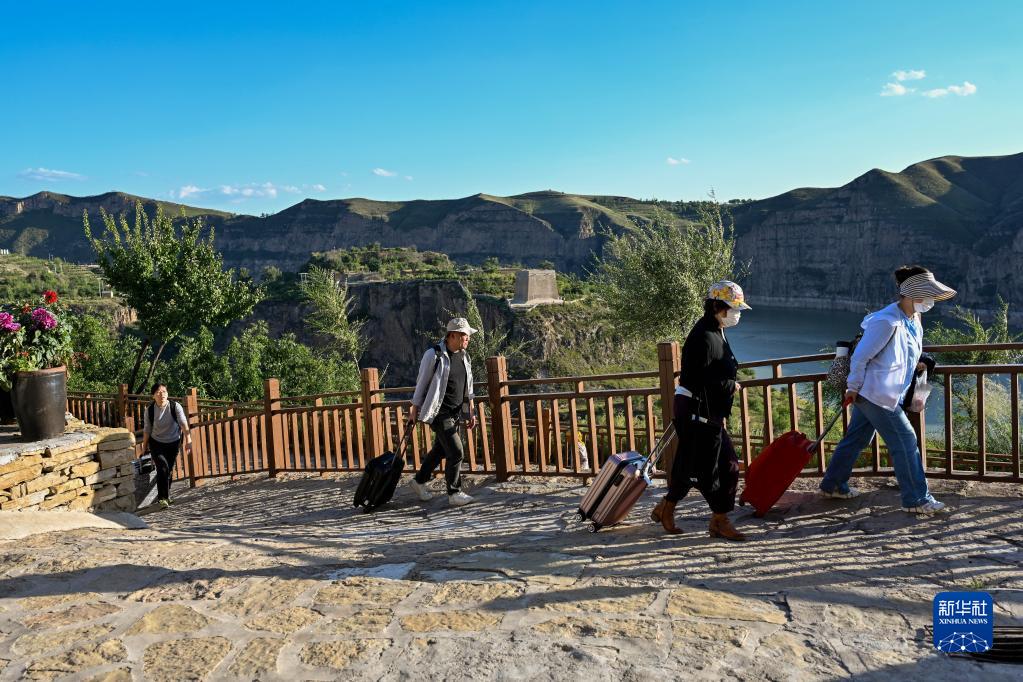 8月24日,游客們在黃河老牛灣去民宿住宿。