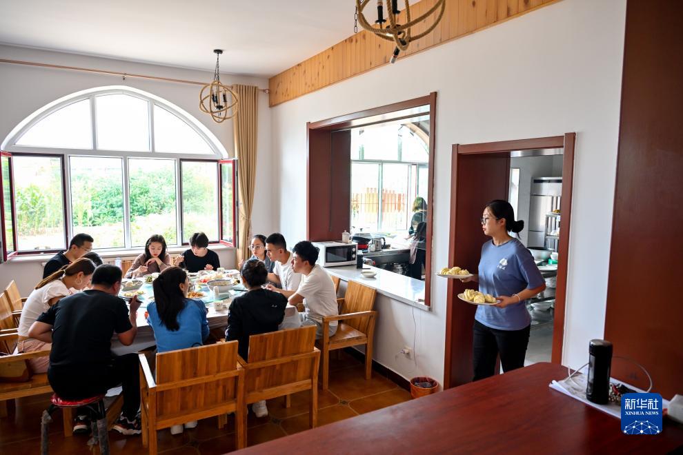 8月26日,游客在黃河老牛灣的一家民宿用餐。