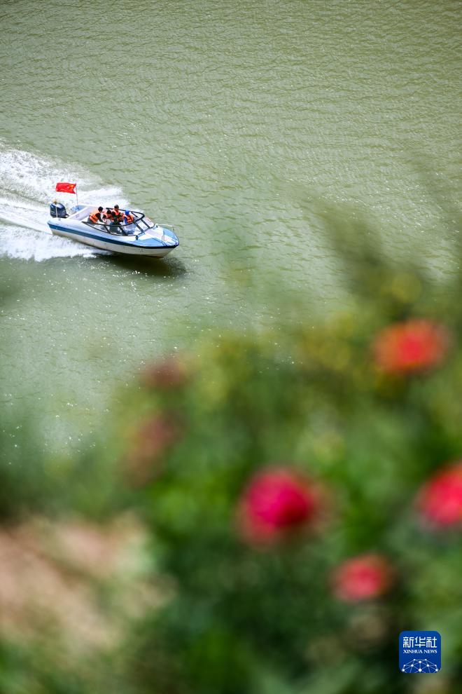 8月24日,游客在黃河老牛灣乘快艇游玩。