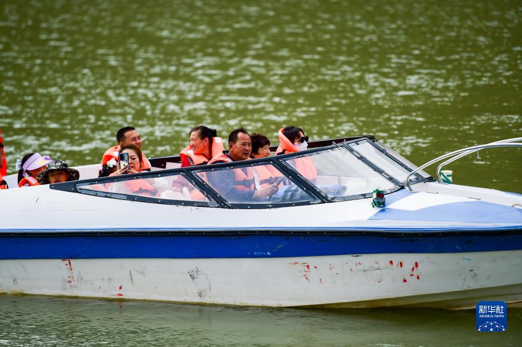 8月26日,游客在黃河老牛灣乘快艇游玩。