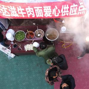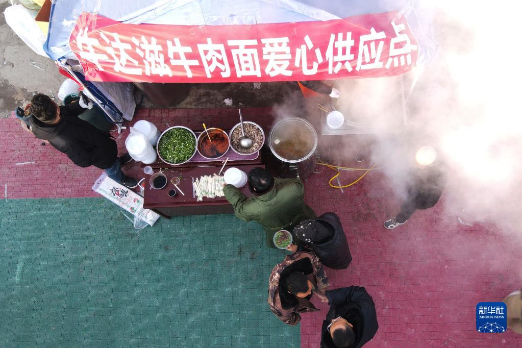 當日,200余座防風、保暖、阻燃的活動板房在甘肅臨夏積石山縣大河家鎮梅坡村搭建完成並陸續投用,當地安置特困人員、老人、孩子多的家庭優先入住,並向受災群眾提供熱氣騰騰的牛肉麵。