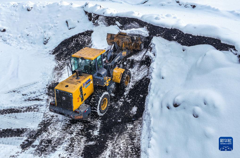 12月21日,在山東省榮成市熱電廠,工作人員駕駛機械在運輸電煤(無人機照片)。
