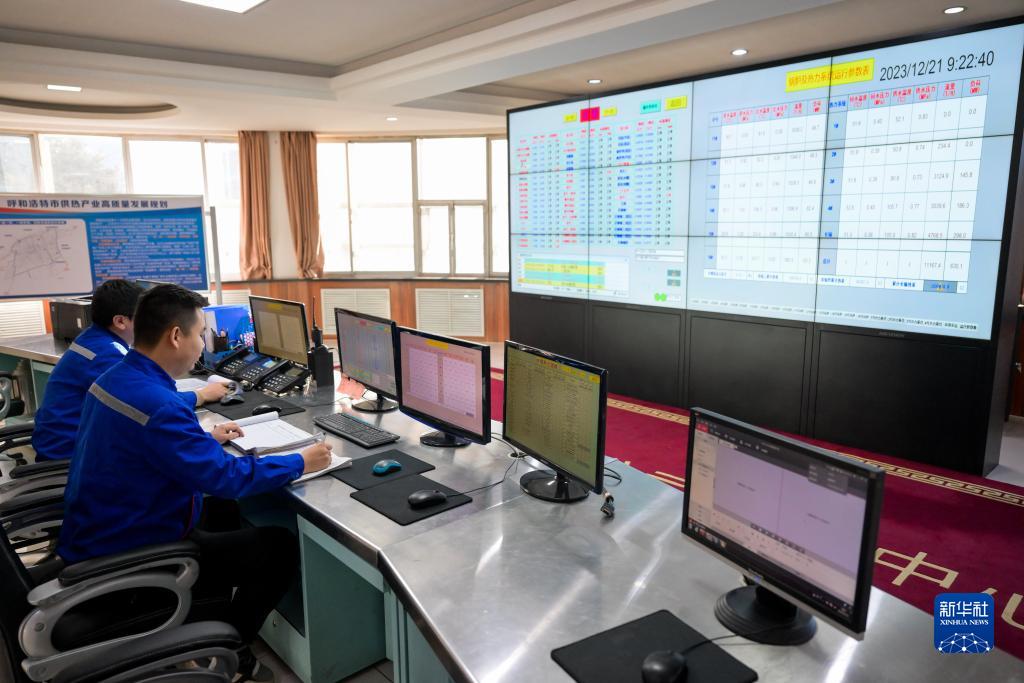 12月21日,呼和浩特市城發供熱有限責任公司橋靠分公司工作人員在實時監控供熱設備的運行情況。